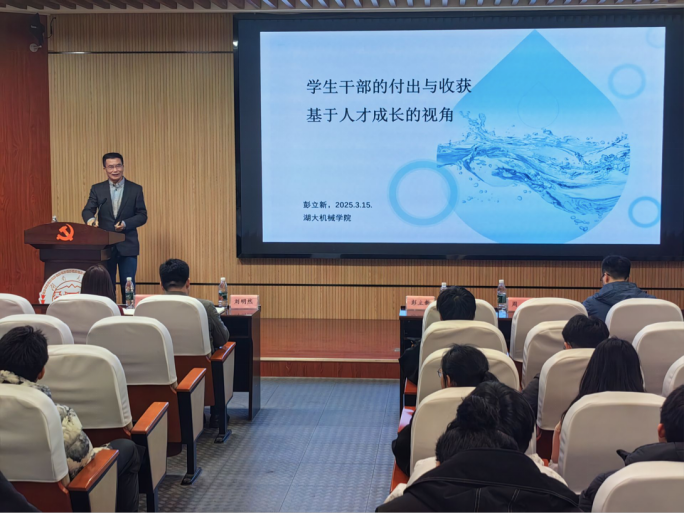 特聘教授彭立新,他曾任康明斯副总裁、中国区首席技术官,为学生干部们带来了一场主题为《学生干部的付出与收获—基于人才成长视角》的授课。免费色情党委副书记刘明然、各年级辅导员出席。