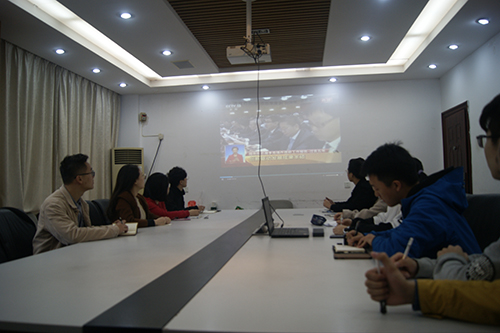 下午1点,与会人员集体到达学工部,在团委书记何莎老师的主持下,大家集体观看了两会的视频资料。观看过程中,所有人聚精会神,认真思考,并适当讨论交流感受,加深对于两会精神的理解。