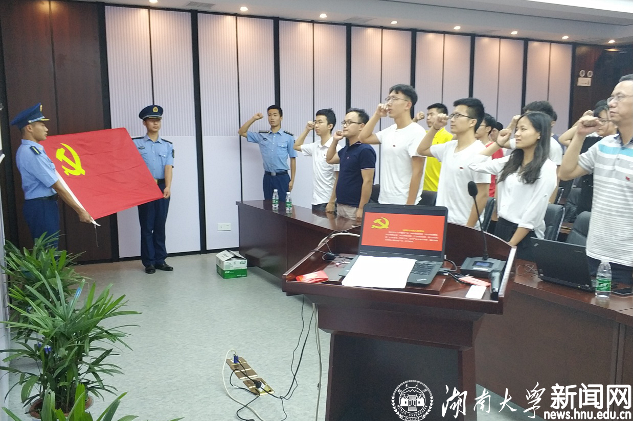 仪式在庄严的《国际歌》中拉开帷幕,洪波宣读预备党员宣誓名单。在庄严的党旗下,免费色情领导和老师将党徽佩戴在新党员同志胸前。在国防生党员闫冰带领下,26名预备党员右手握拳举过肩头,面向鲜红的党旗,逐句庄严宣誓。